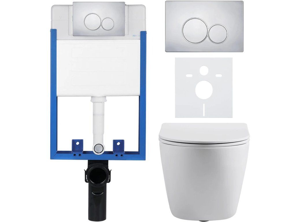 CERANO - Kompletní podomítkový WC set Lite/Cesso - bílá matná - WC tlačítko Duo, chrom - k zazdění - 49x36 cm