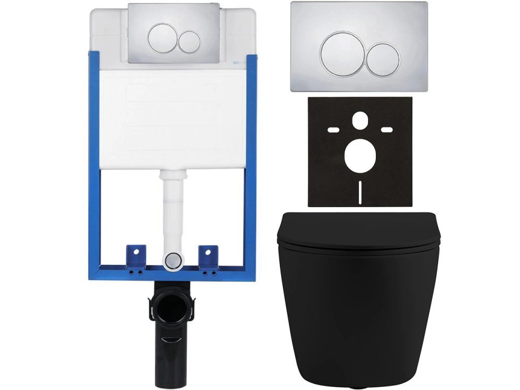 CERANO - Kompletní podomítkový WC set Lite/Cesso - černá matná - WC tlačítko Duo, chrom - k zazdění - 49x36 cm