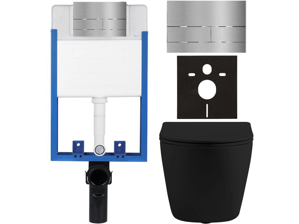 CERANO - Kompletní podomítkový WC set Lite/Cesso - černá matná - WC tlačítko Line, nerez - k zazdění - 49x36 cm