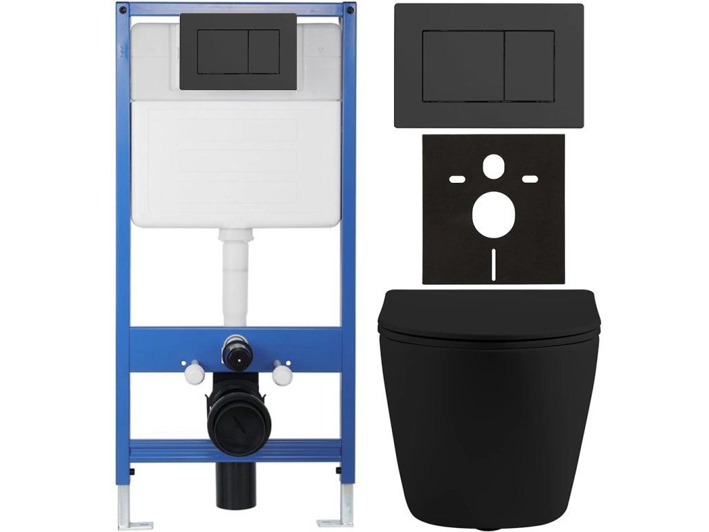 CERANO - Kompletní podomítkový WC set Lite/Cesso - černá matná - WC tlačítko Classic, černé matné - předstěnová instalace/sádrokarton - 49x36 cm