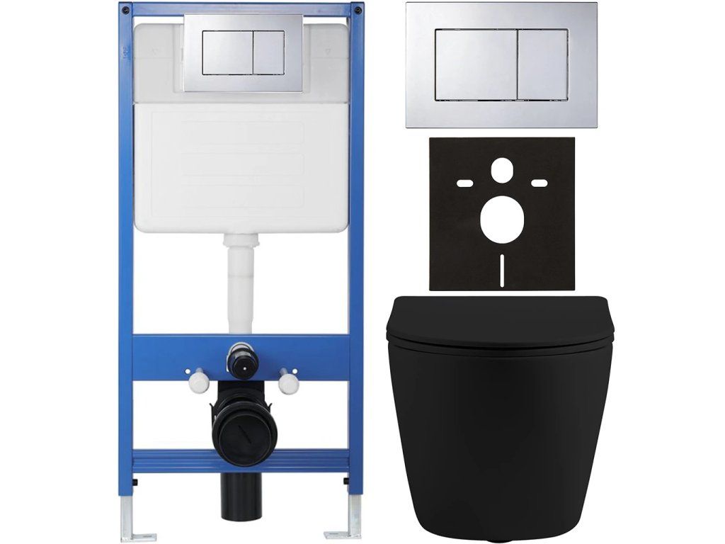 CERANO - Kompletní podomítkový WC set Lite/Cesso - černá matná - WC tlačítko Classic, chrom - předstěnová instalace/sádrokarton - 49x36 cm