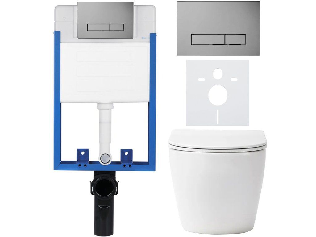 CERANO - Kompletní podomítkový WC set Lite/Verde - bílá lesklá - WC tlačítko Slim, tmavě šedá - k zazdění - 49x36 cm
