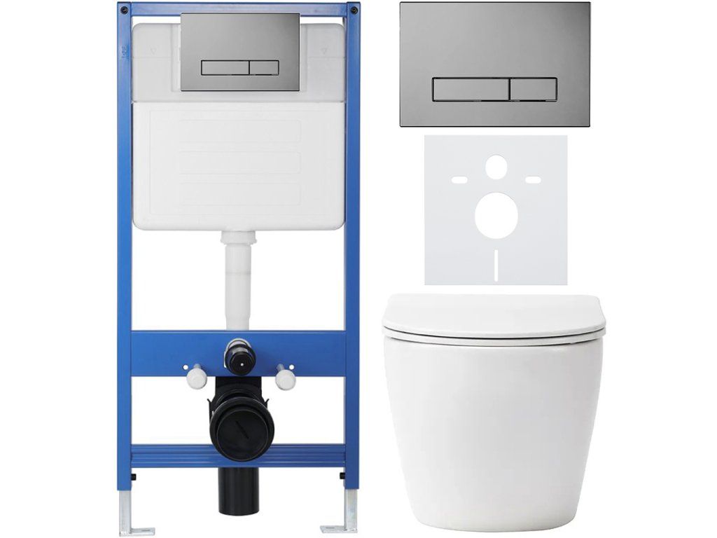 CERANO - Kompletní podomítkový WC set Lite/Verde - bílá matná - WC tlačítko Slim, tmavě šedá - předstěnová instalace/sádrokarton - 49x36 cm