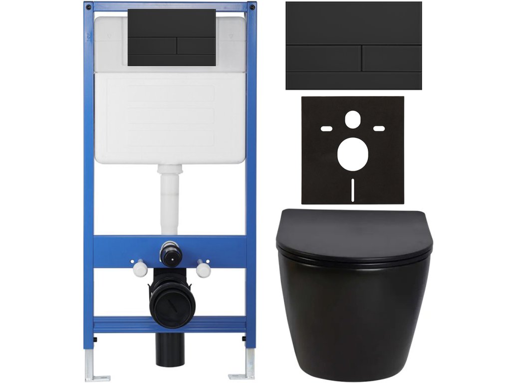 CERANO - Kompletní podomítkový WC set Lite/Verde - černá lesklá - WC tlačítko Line, černá matná - předstěnová instalace - 49x36 cm