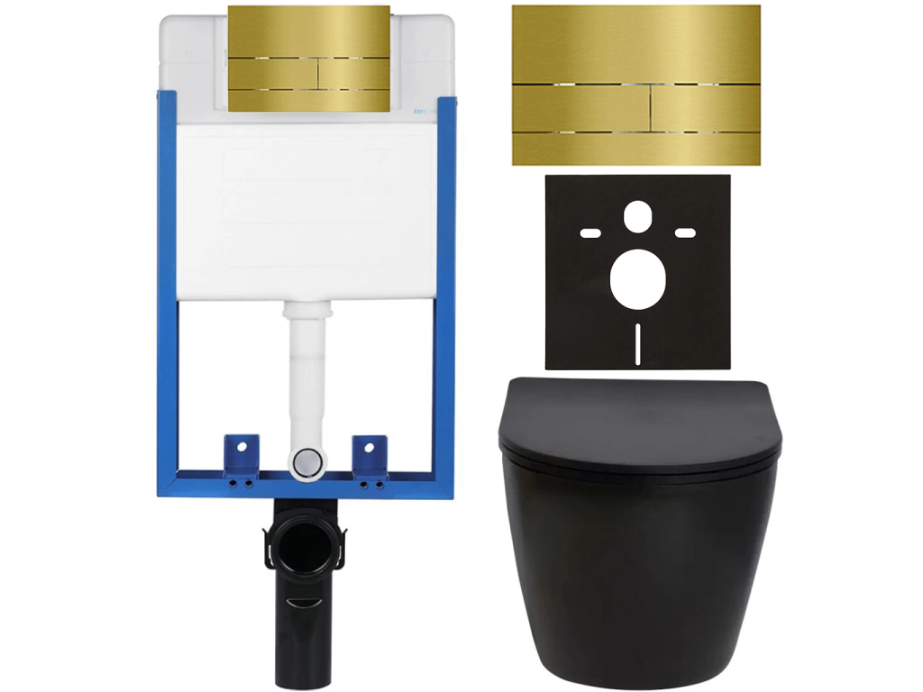 CERANO - Kompletní podomítkový WC set Lite/Verde - černá matná - WC tlačítko Line, zlatá - k zazdění - 49x36 cm