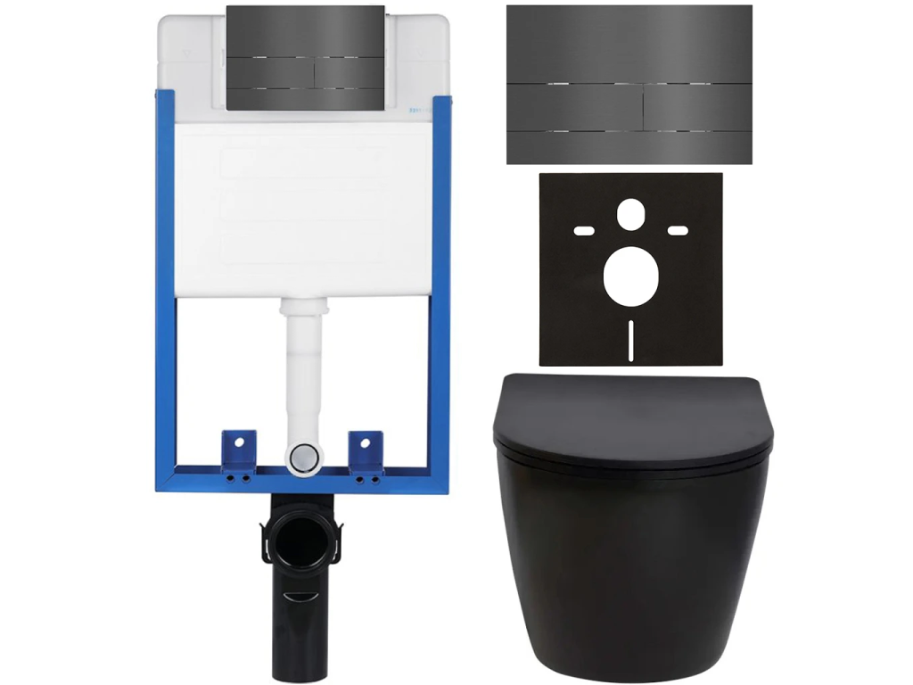 CERANO - Kompletní podomítkový WC set Lite/Verde - černá matná - WC tlačítko Line, tmavě šedá - k zazdění - 49x36 cm