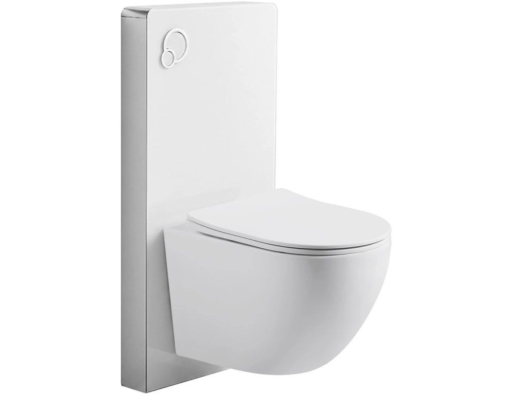 CERANO - Kompletní WC set sanitární splach. modul - bílá matná + WC závěsné Cesso, Vortex Rimless + Slim/UF sedátko - bílá matná - 49x36 cm