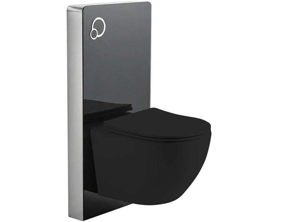 CERANO - Kompletní WC set sanitární splach. modul - černá matná + WC závěsné Verde, Rimless + Slim/UF sedátko - černá matná - 49x36 cm