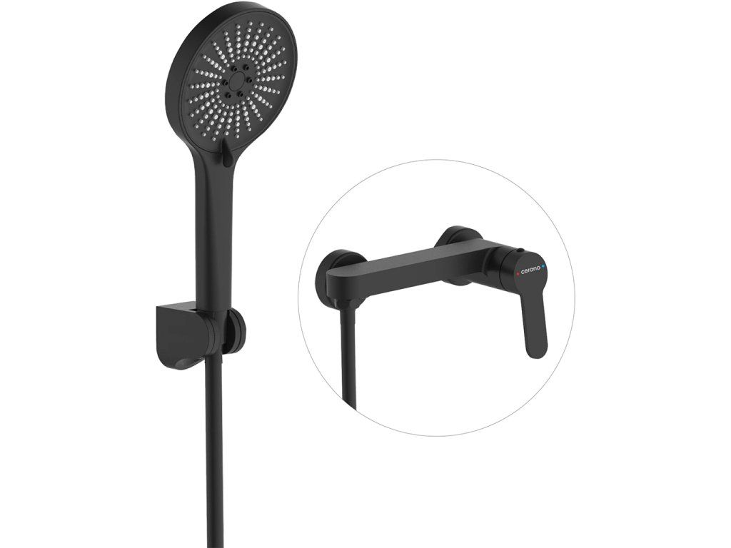 CERANO - Sprchová nástěnná baterie Velea s příslušenstvím - černá matná