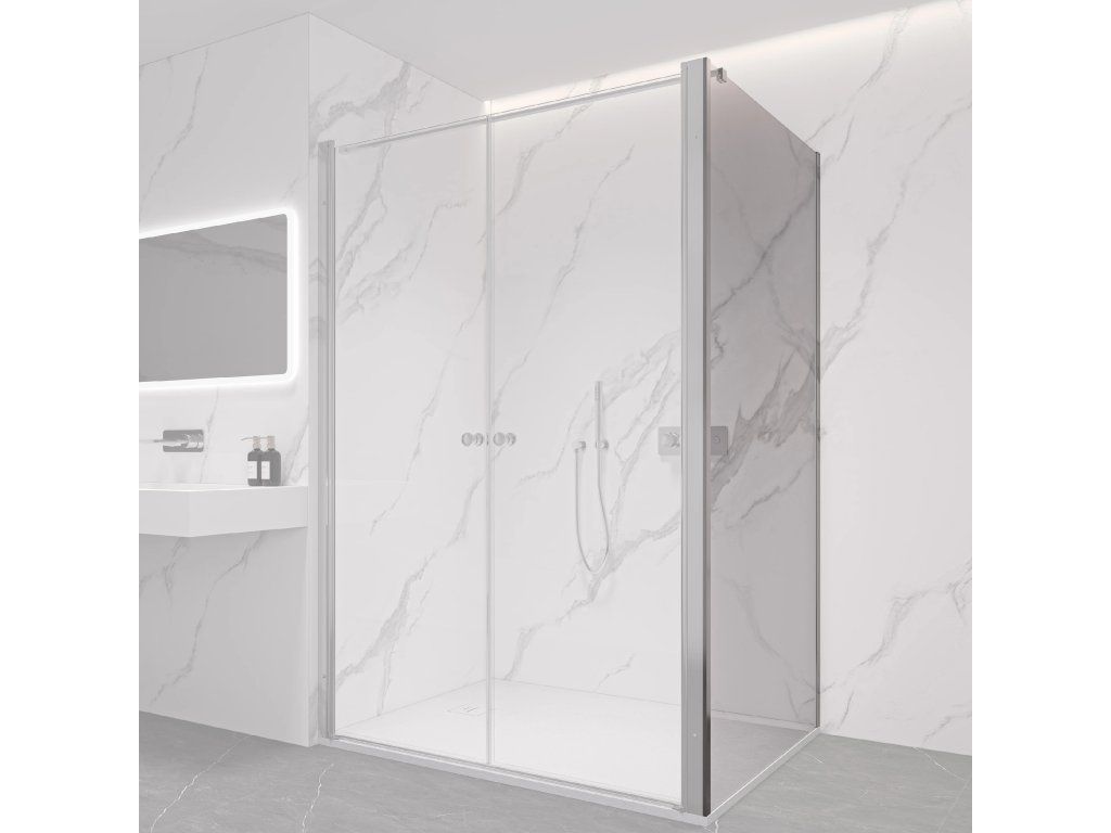 Tato sprchová zástěna s transparentním sklem zvýrazní prostor a podpoří světlost koupelny. Vytvoří tak příjemné a otevřené prostředí pro vaši relaxaci.