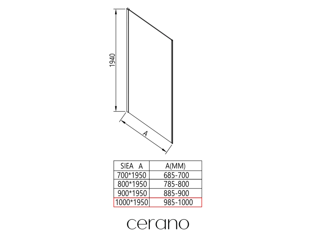 CERANO - Boční stěna Porte L/P - 8 mm - chrom, transparentní sklo - 100x195 cm