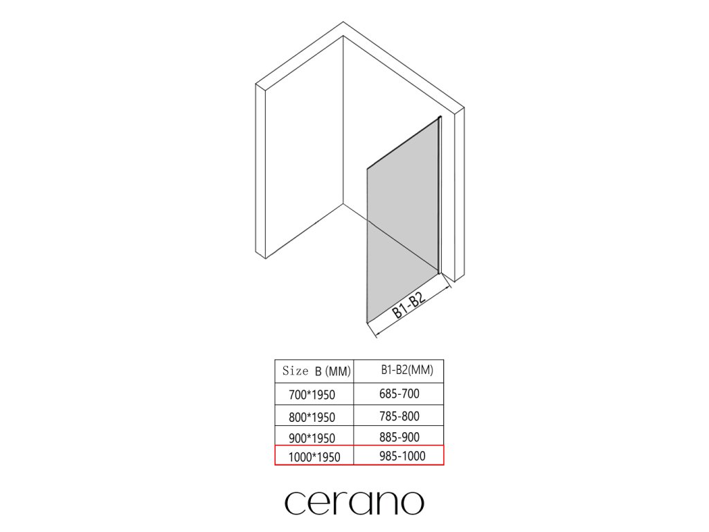 CERANO - Boční stěna Orlano L/P - 5 mm - černá matná, transparentní sklo - 100x195 cm - ROZBALENO
