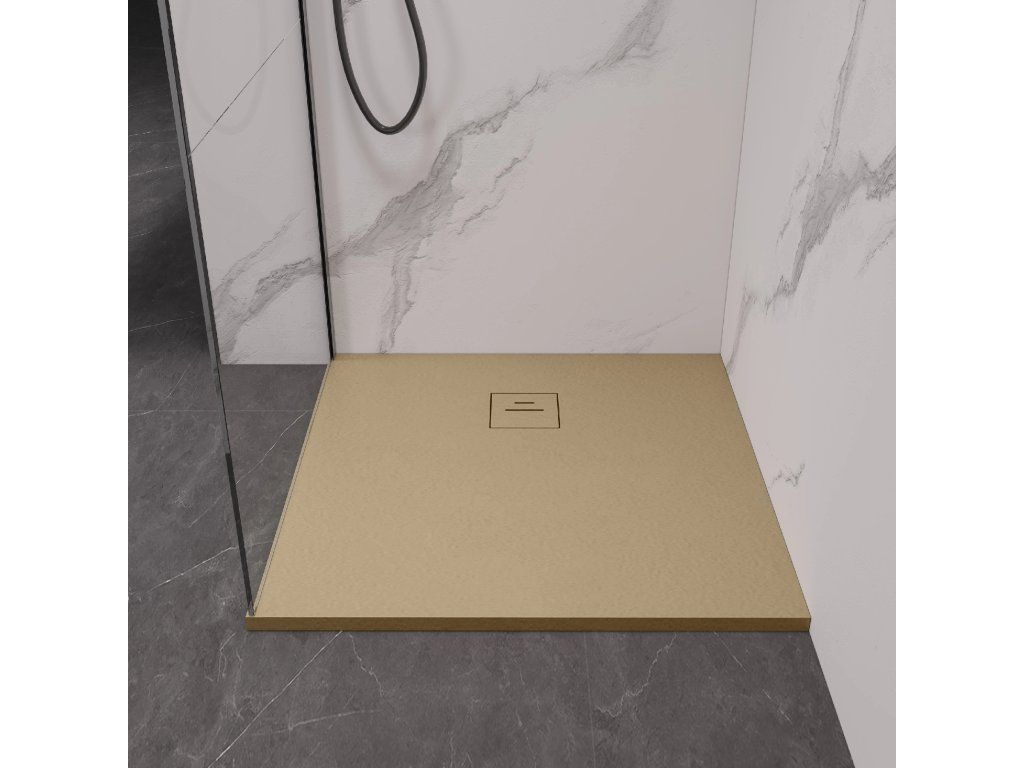 CERANO - Sprchová vanička čtvercová Pablo - SMC/minerální kompozit - strukturovaná ivory - 80x80x3 cm