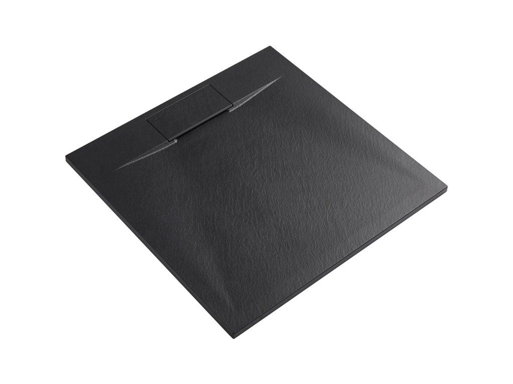 CERANO - Sprchová vanička čtvercová Enzo - SMC/minerální kompozit - strukturovaná černá matná - 90x90x3 cm