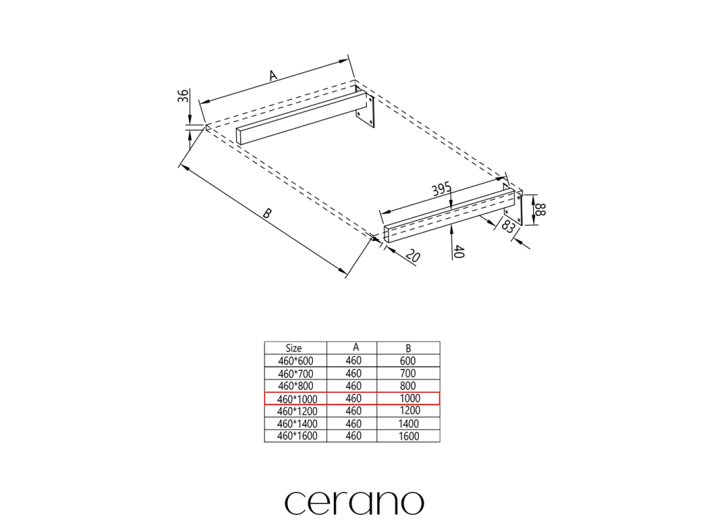 CERANO - Deska pod umyvadlo Navira Pro + 2 skryté konzole - černá matná - 100x46x3,6 cm