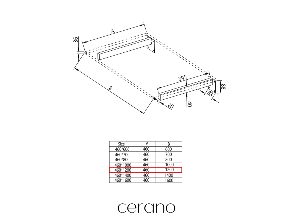 CERANO - Deska pod umyvadlo Navira Pro + 2 skryté konzole - černá matná - 120x46x3,6 cm