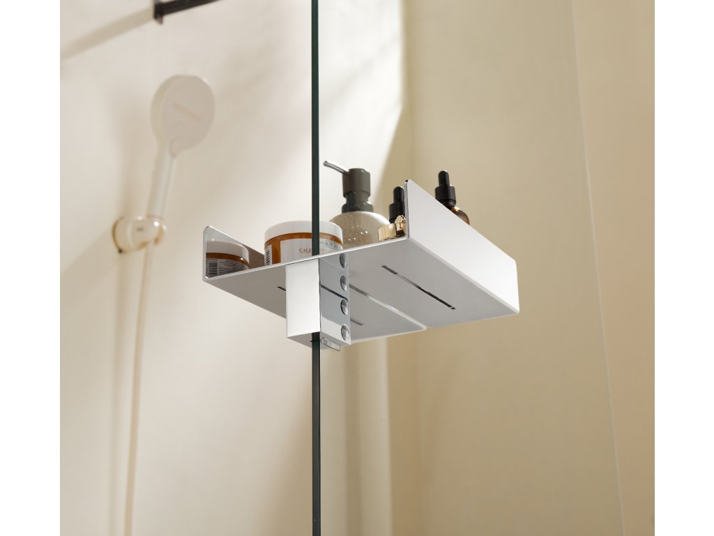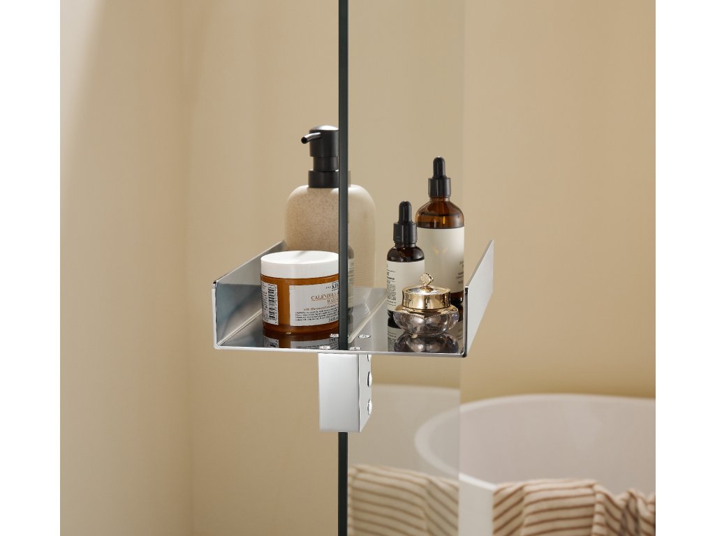 Praktický elegantní držák na ručníky zvenčí a polička zevnitř je ideální pomocník pro všechny sprchové zástěny walk-in. Lze použít pro i všechny sprchové zástěny s maximální tloušťkou skla 8mm. Je ideálním řešením minimalistických koupelen, v nichž snadno vyřeší problém s umístěním kosmetických produktů, drobného vybavení a zavěšení ručníků a osušek tak, aby vše bylo hned po ruce.