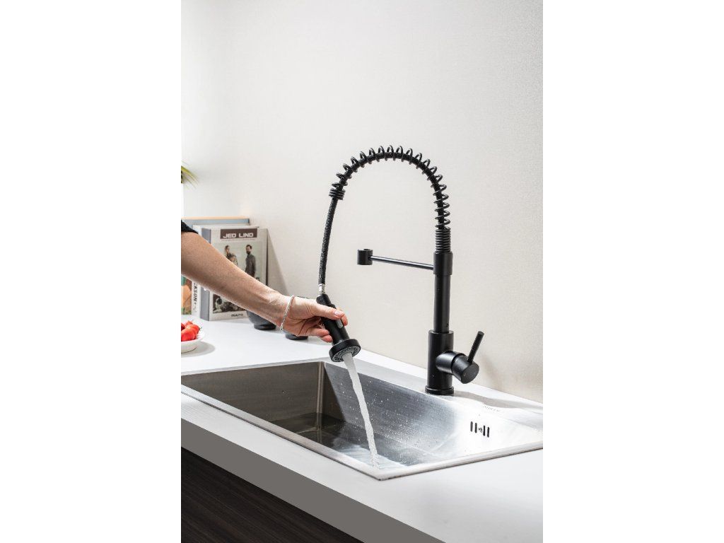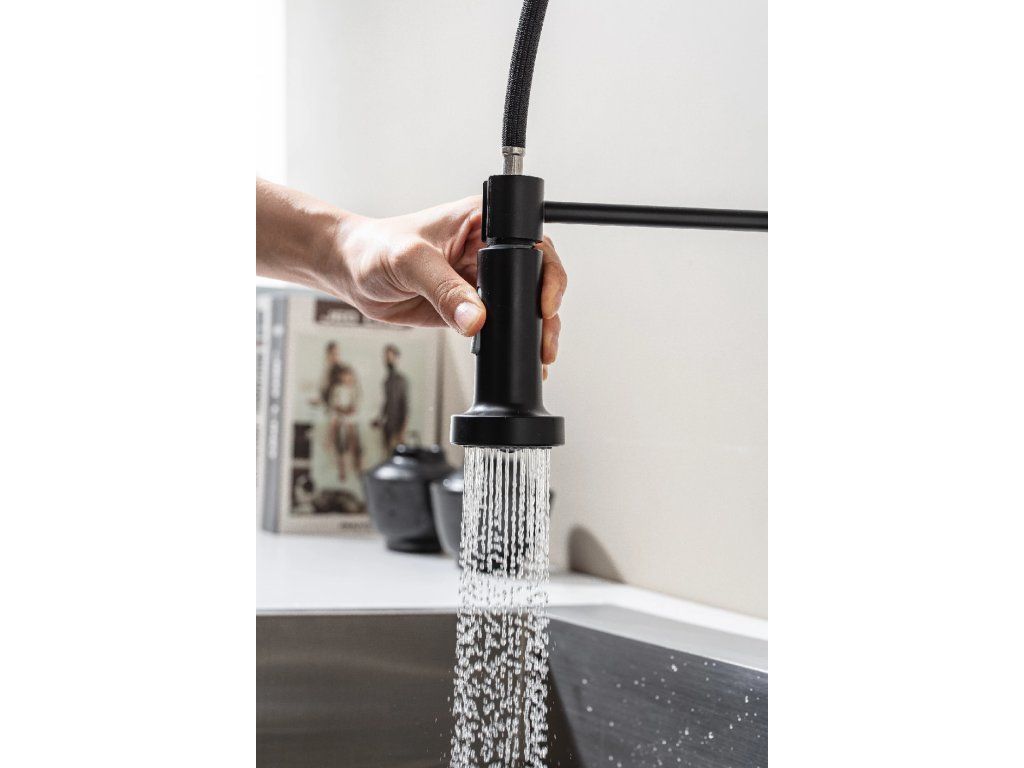 Je funkce dovolující vysunout spršku, což usnadňuje manipulaci s vodním paprskem při mytí nádobí, čištění dřezu nebo plnění hrnců. Sprška je spojená s tělem baterie pružnou hadicí, která se díky zpětnému mechanismu automaticky vrací do původní pozice.