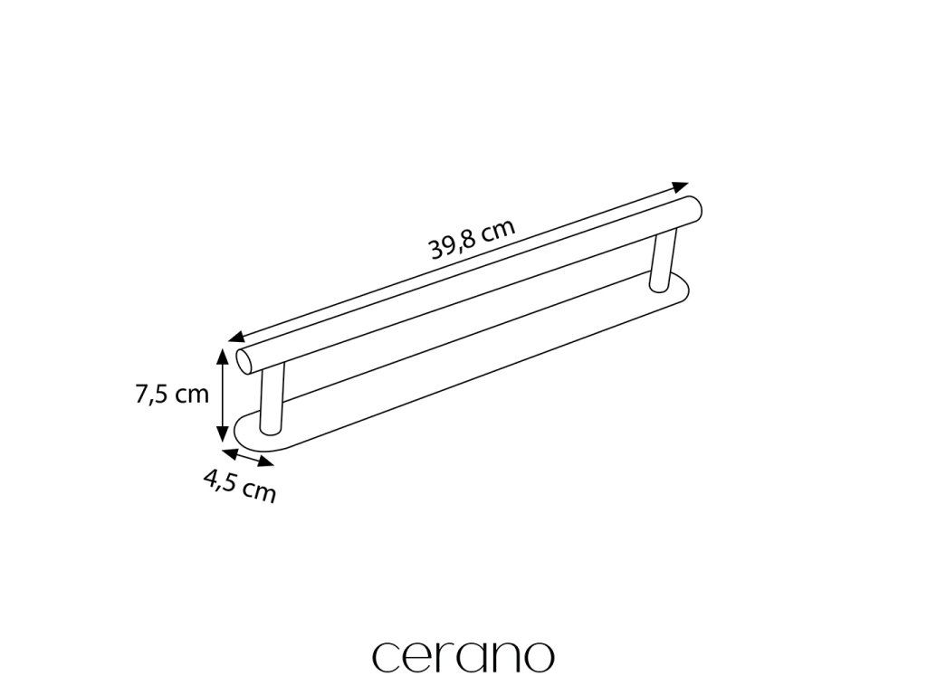Držák ručníků značky Cerano ze série Reno je vyroben z nerezové oceli, díky čemuž disponuje vysokou odolnost vůči vlhkosti a korozivním účinkům. Jeho design je jednoduchý, ale elegantní. V naší nabídce je k dispozici v černé matné barvě nebo chromové variantě.