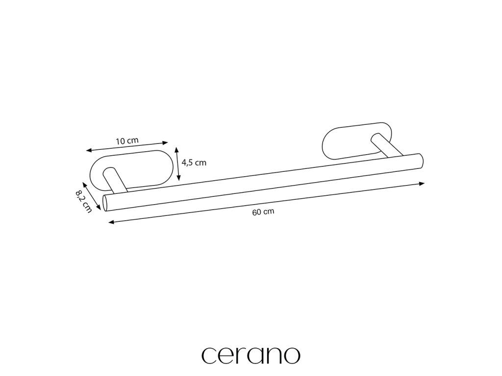 Držák ručníků značky Cerano ze série Reno je vyroben z nerezové oceli, díky čemuž disponuje vysokou odolnost vůči vlhkosti a korozivním účinkům. Jeho design je jednoduchý, ale elegantní. V naší nabídce je k dispozici v černé matné barvě nebo chromové variantě.