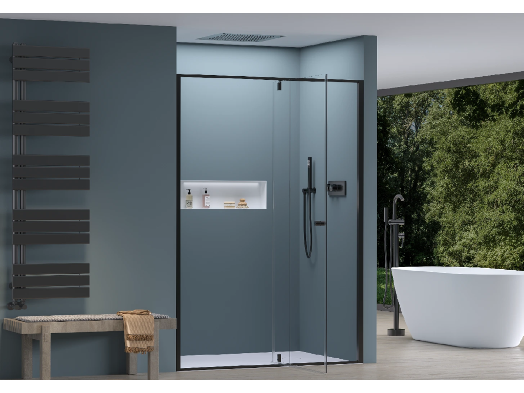 428758 cerano sprchove pivotove dvere santini l p 6 mm cerna matna transparentni sklo 110x195 cm