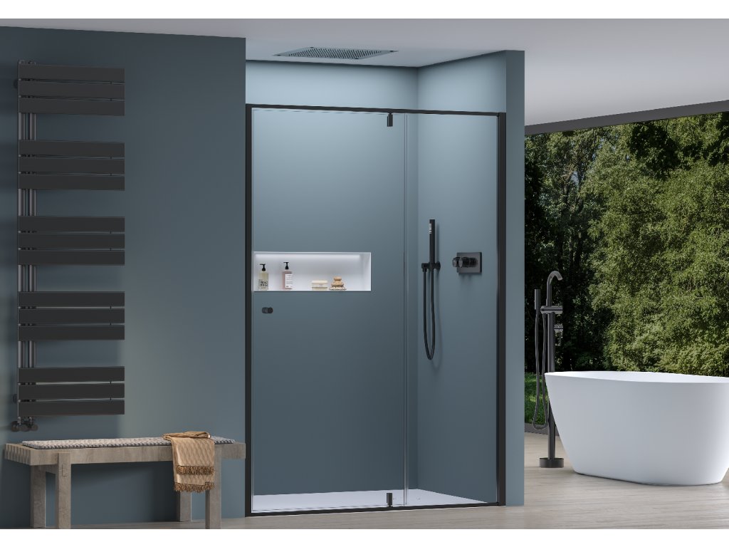 CERANO - Sprchové pivotové dveře Santini L/P - 6 mm - černá matná, transparentní sklo - 110x195 cm - ROZBALENO