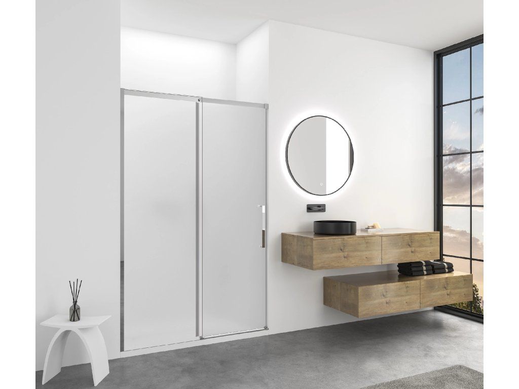CERANO - Sprchové posuvné dveře Lantono - levá - 8 mm - Soft-Close - chrom, mléčné sklo - 130x195 cm