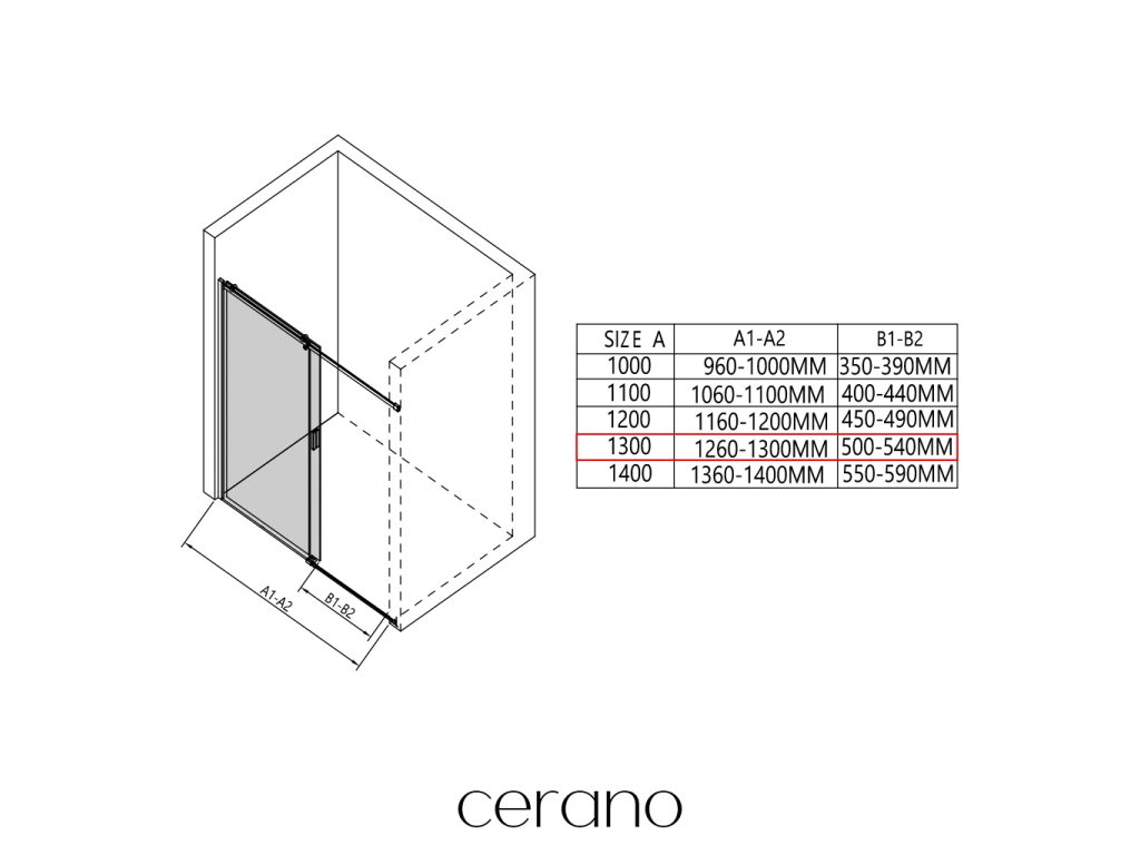 V rámci této série nabízíme širokou škálu rozměrů, abychom uspokojili různé potřeby našich zákazníků. Všechny sprchové kouty, dveře a zástěny značky CERANO jsou plně kompatibilní se sprchovými vaničkami CERANO ve stejných rozměrech, což zajišťuje bezproblémovou instalaci a dokonalé sladění. Sprchový kout lze navíc instalovat flexibilně – buď na odpovídající sprchovou vaničku, nebo přímo na podlahu podle vašich preferencí a možností koupelny.