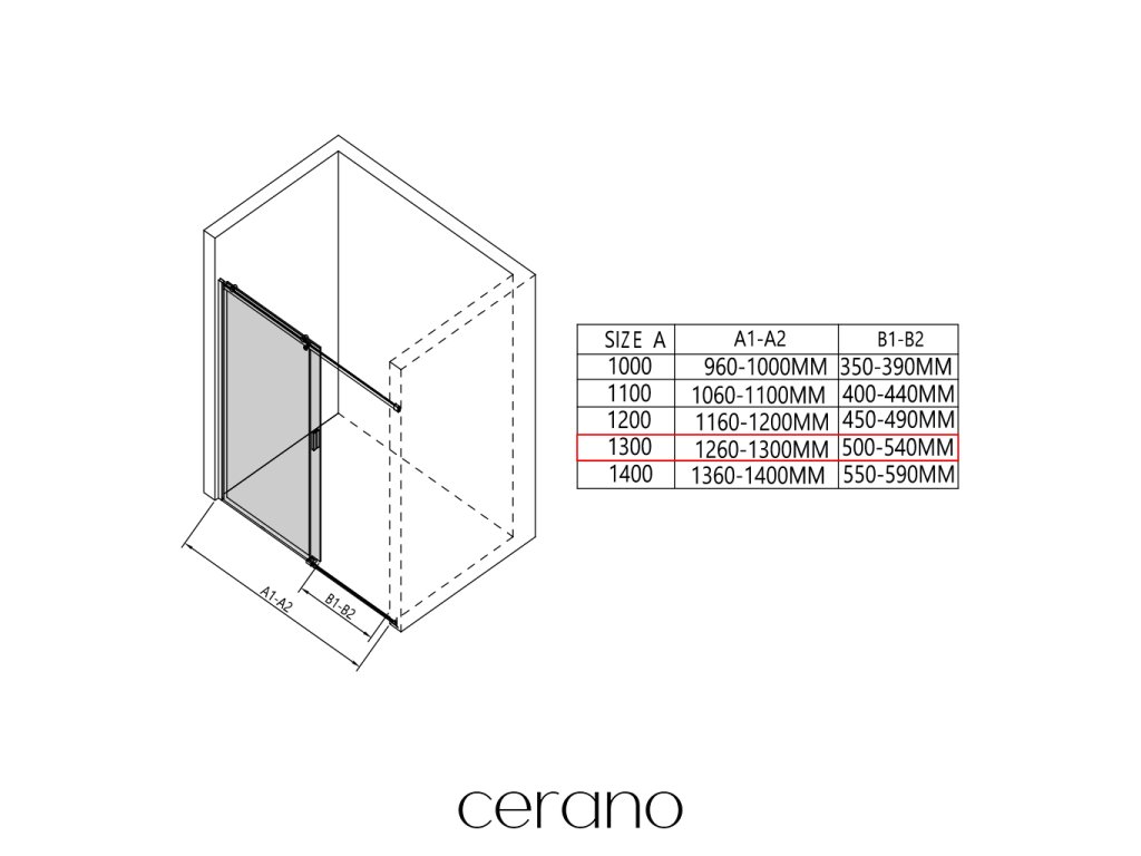 V rámci této série nabízíme širokou škálu rozměrů, abychom uspokojili různé potřeby našich zákazníků. Všechny sprchové kouty, dveře a zástěny značky CERANO jsou plně kompatibilní se sprchovými vaničkami CERANO ve stejných rozměrech, což zajišťuje bezproblémovou instalaci a dokonalé sladění. Sprchový kout lze navíc instalovat flexibilně – buď na odpovídající sprchovou vaničku, nebo přímo na podlahu podle vašich preferencí a možností koupelny.