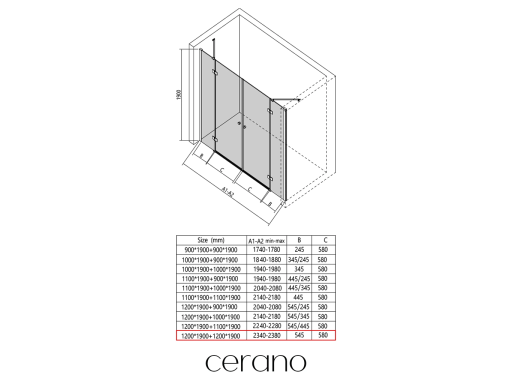 V rámci této série nabízíme širokou škálu rozměrů, abychom uspokojili různé potřeby našich zákazníků. Všechny sprchové kouty, dveře a zástěny značky CERANO jsou plně kompatibilní se sprchovými vaničkami CERANO ve stejných rozměrech, což zajišťuje bezproblémovou instalaci a dokonalé sladění. Sprchový kout lze navíc instalovat flexibilně – buď na odpovídající sprchovou vaničku, nebo přímo na podlahu podle vašich preferencí a možností koupelny.