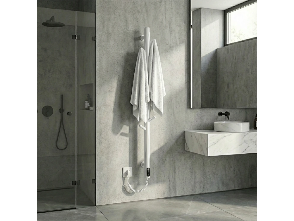 CERANO - Elektrický sušák ručníků Ramus, s displejem - 160W - bílá lesklá - 1400x30 mm - 2. jakost