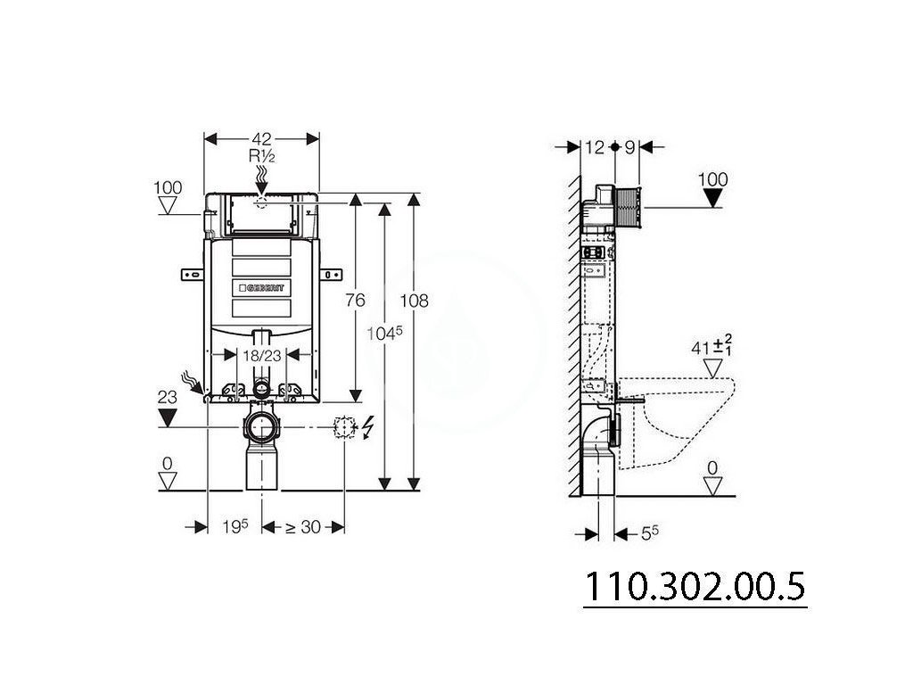- vybaven trubkovou chráničkou pro přívodní potrubí k připojení sprchovacích WC Geberit AquaClean