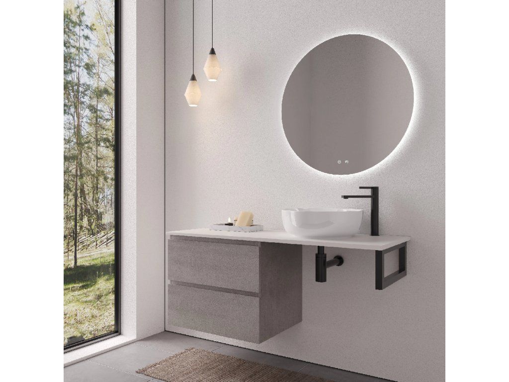 CERANO - Deska z litého mramoru Elanys - 120x46,5x1,2 cm - skříňka Carole 59 cm - betonově šedá - konzole černá