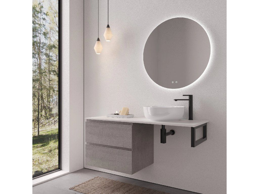 CERANO - Deska z litého mramoru Elanys - 160x46,5x1,2 cm - skříňka Carole 79 cm - betonově šedá - konzole černá