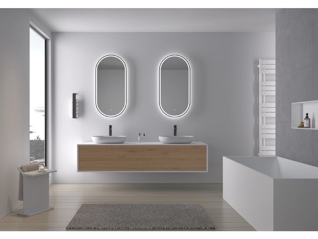 Zrcadlo je vybaveno kombinací LED osvětlení, které svítí jak směrem ke stěně ze zadní strany, tak přímo do prostoru skrz jednolitý světelný pás v zrcadle . Zadní podsvícení vytváří jemný světelný efekt po obvodu, zatímco přední osvětlení zajišťuje rovnoměrné podsvícení obličeje a prostoru před zrcadlem. Obě světelné složky se doplňují a poskytují rovnoměrné a funkční osvětlení koupelny.