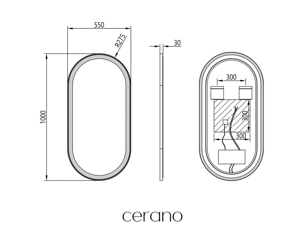 Na zadní straně zrcadla je připravený konektor pro připojení ke zdroji. Je to praktické řešení, které umožňuje skrýt kabely za zrcadlem, což zajišťuje estetický a upravený vzhled koupelny.