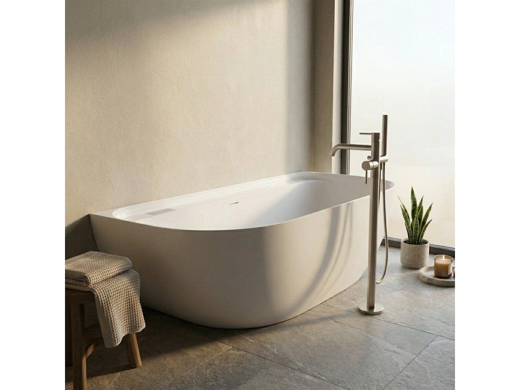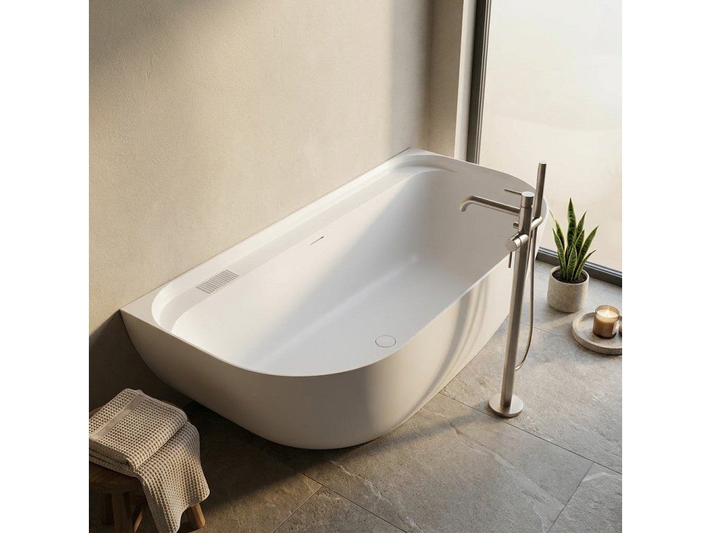 CERANO - Volně stojící vana z litého mramoru Valeria, nástěnná - bílá matná - 150x80 cm