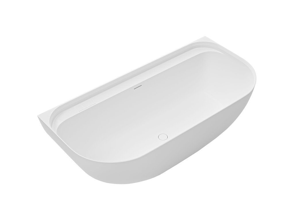 Přepad je pevnou součástí vany z litého mramoru a je vytvořen přímo jako součást odlitku ve formě, proto není nutné instalovat celý vanový komplet, ale pouze vanovou výpusť. Díky slim provedení působí úzký přepadový otvor nenápadně a nenarušuje čisté linie vany.