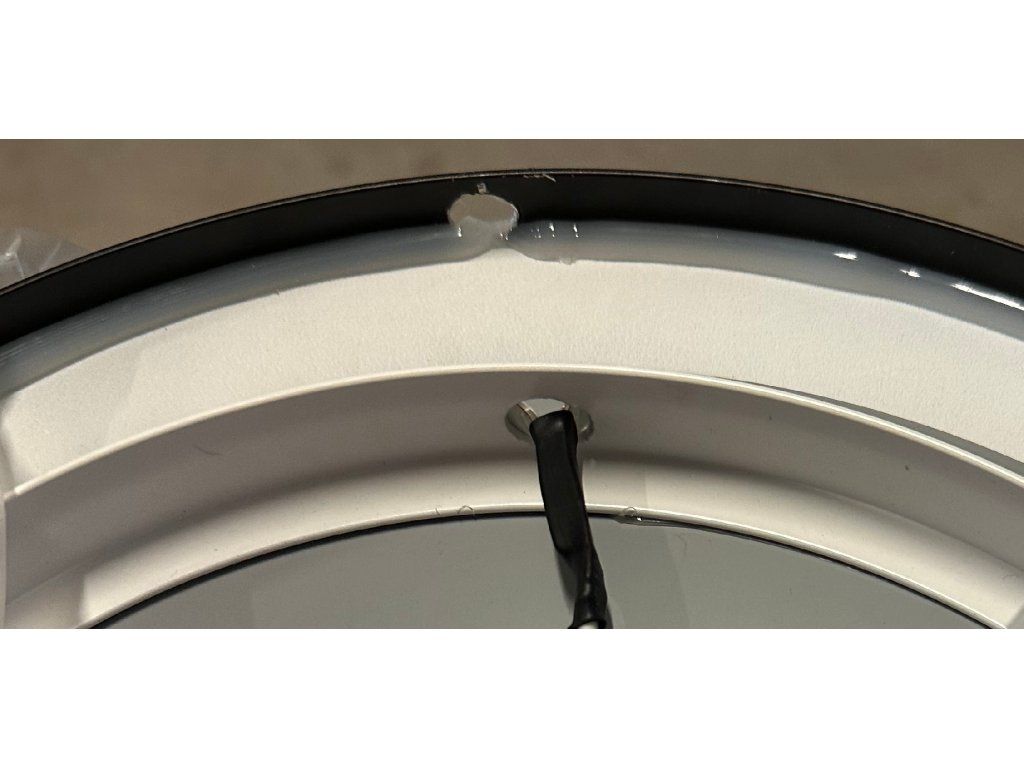 Na zrcadle jsou stopy po instalaci, oděrky. Produkt je plně funkční.