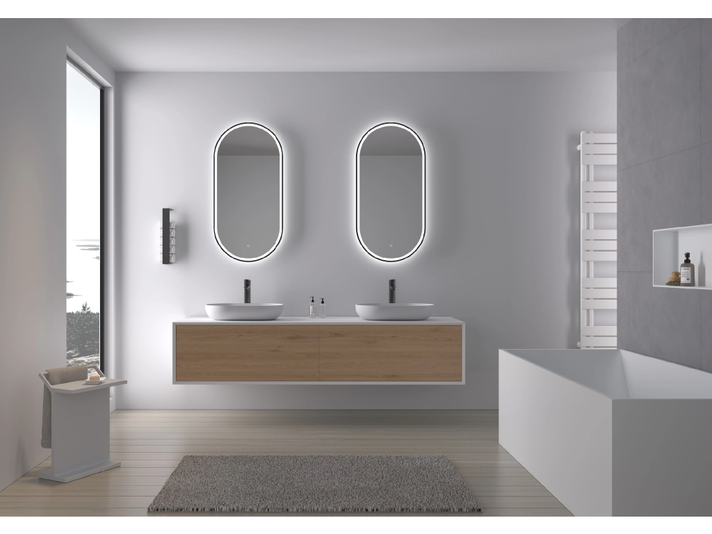 Zrcadlo je vybaveno LED osvětlením s nastavitelnou barvou světla – od 3000 K (teplá) do 6000 K (Neutrální). Přepínání barev jednoduše ovládáte dotykovým tlačítkem na ploše zrcadla. Poskytuje intenzivní a jasné světlo pro detailní péči i příjemné, jemné osvětlení pro relaxaci. Díky širokému rozsahu teploty barev tak snadno přizpůsobíte atmosféru aktuální potřebě.