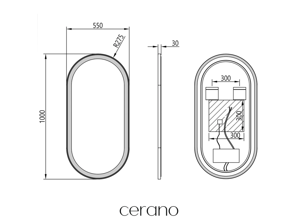 CERANO - Koupelnové LED zrcadlo Alto, kovový rám - černá matná - 55x100 cm - ROZBALENO
