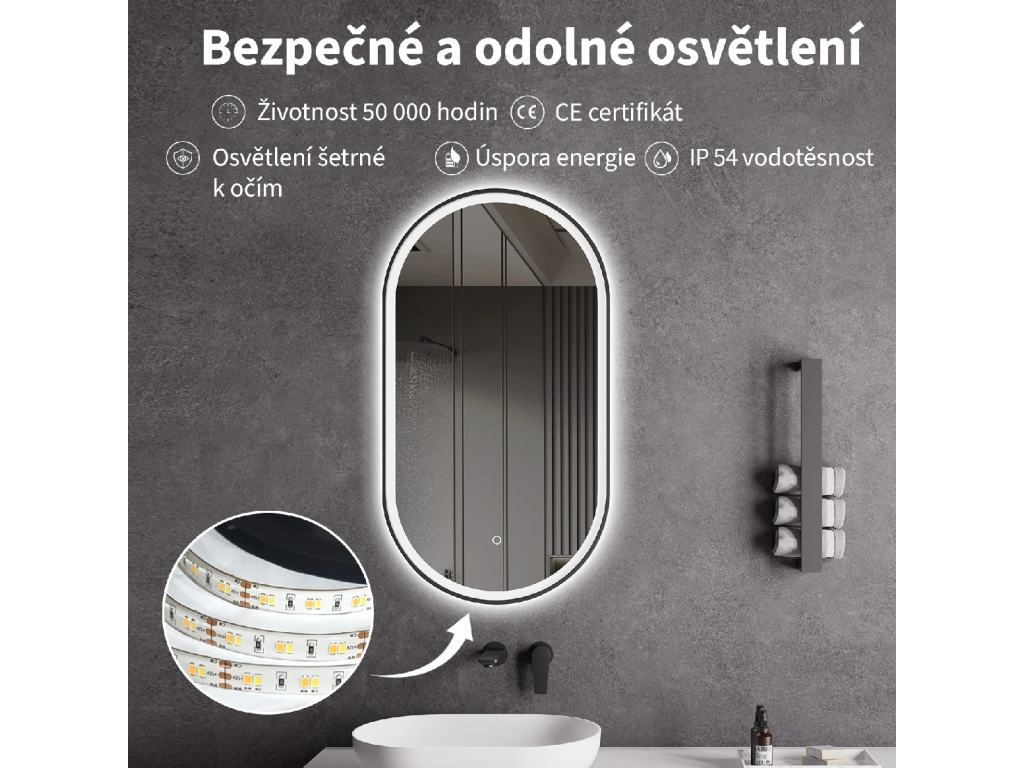 Zrcadla s krytím IP54 jsou ideální do vlhkého prostředí, jako jsou koupelny. Poskytují spolehlivou ochranu proti stříkající vodě, což zaručuje bezpečný a dlouhodobý provoz i v náročných podmínkách.