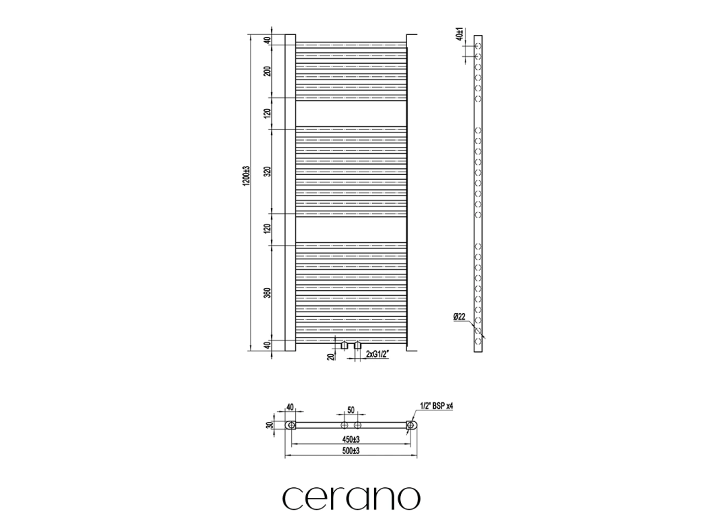Standartní připojení radiátoru je 1/2" , což zajišťuje kompatibilitu s ventily a přípojnými sadami Cerano ,i od jiných výrobců. Ujistěte se, že všechny součásti odpovídají tomuto průměru, aby byl zajištěn bezpečný a efektivní provoz.