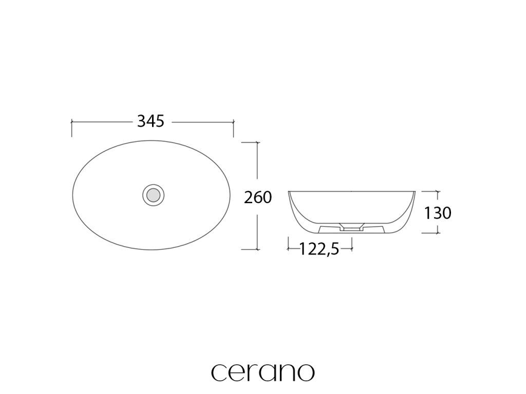 CERANO - Umyvadlo keramické - na desku - Doria - bílá lesklá - 34,5x26 cm