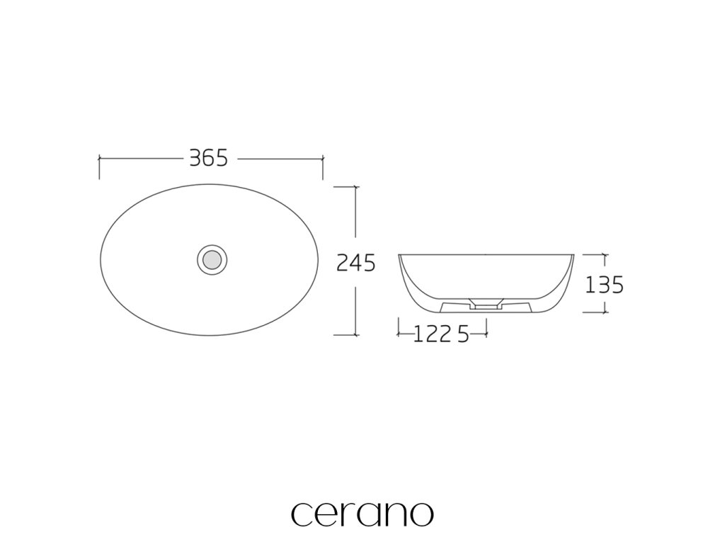 CERANO - Umyvadlo keramické - na desku - Doria - bílá lesklá - 36,5x24,5 cm