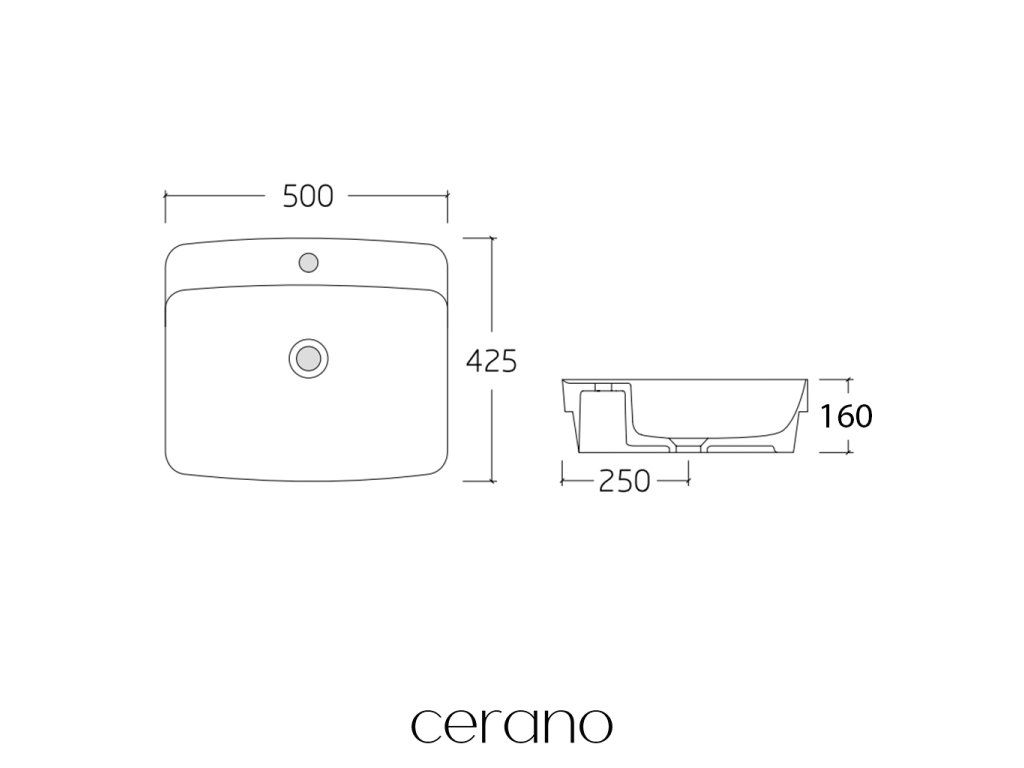 CERANO - Umyvadlo keramické - polozápustné i na desku - Nera - bílá lesklá - 50x42,5 cm