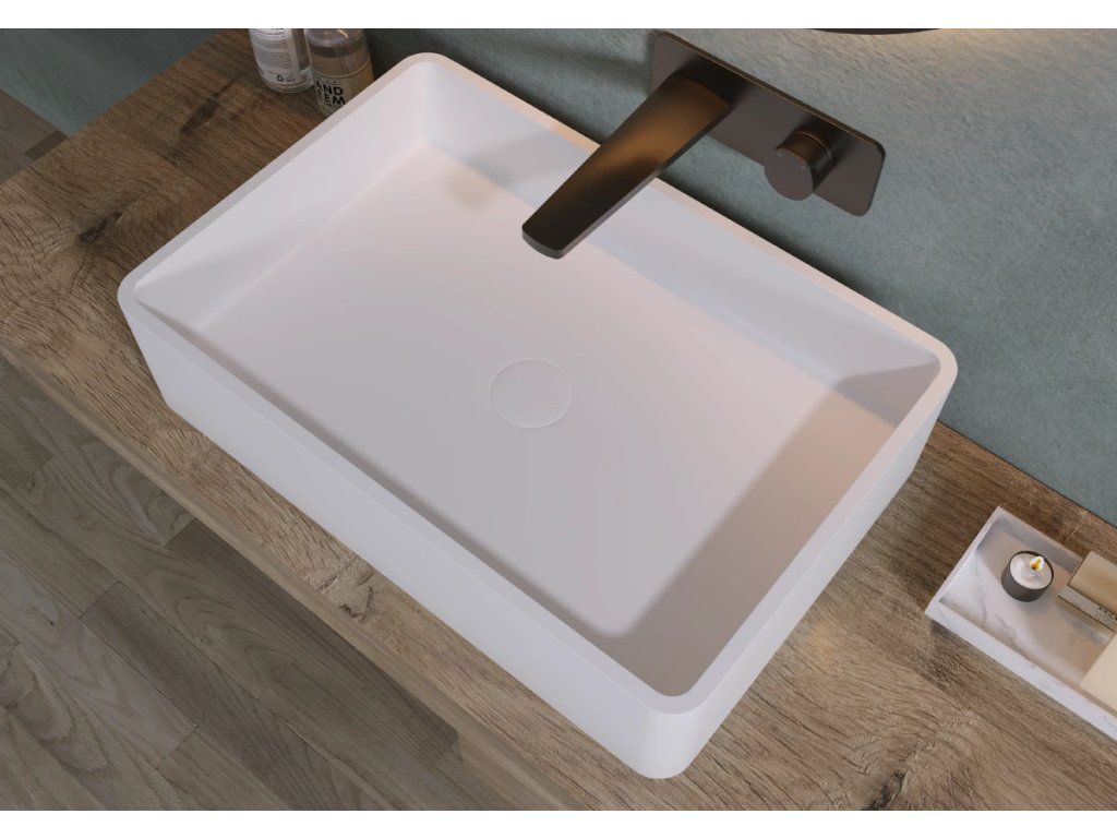 CERANO - Umyvadlo z litého mramoru Lacerta - na desku - bílá matná - 60x40 cm