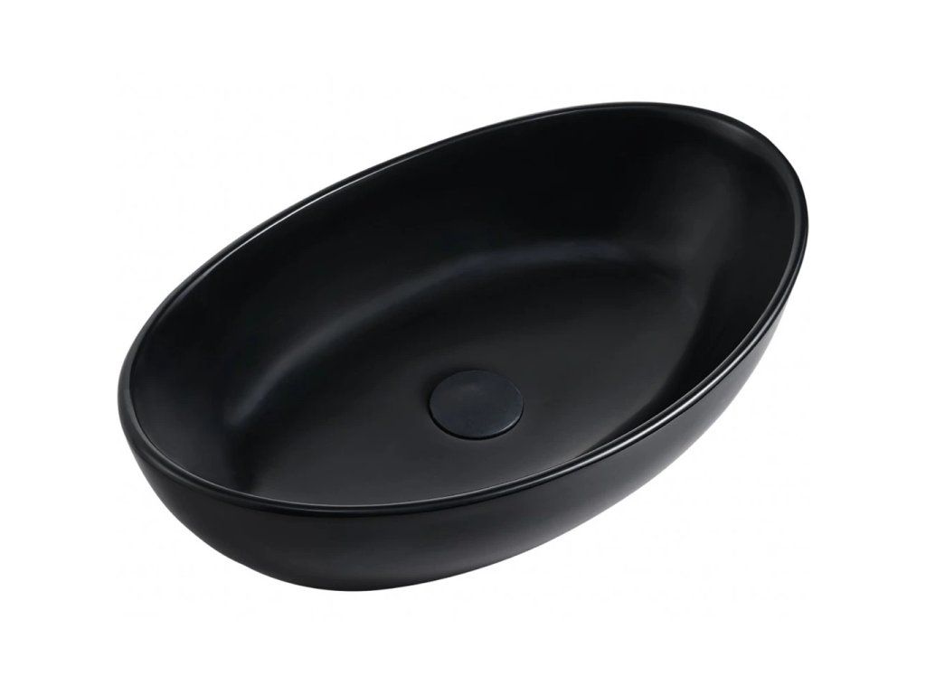 CERANO - Umyvadlo z litého mramoru Luna - na desku - černá matná - 52,8x30,9 cm