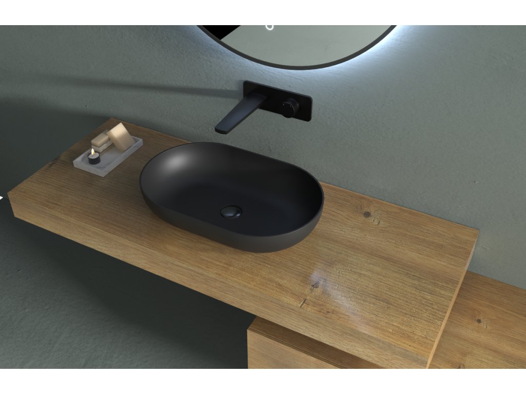 CERANO - Umyvadlo z litého mramoru Lyra - na desku - černá matná - 54x34 cm · e1deda4c-31ab-11ea-beb1-002590dad85e