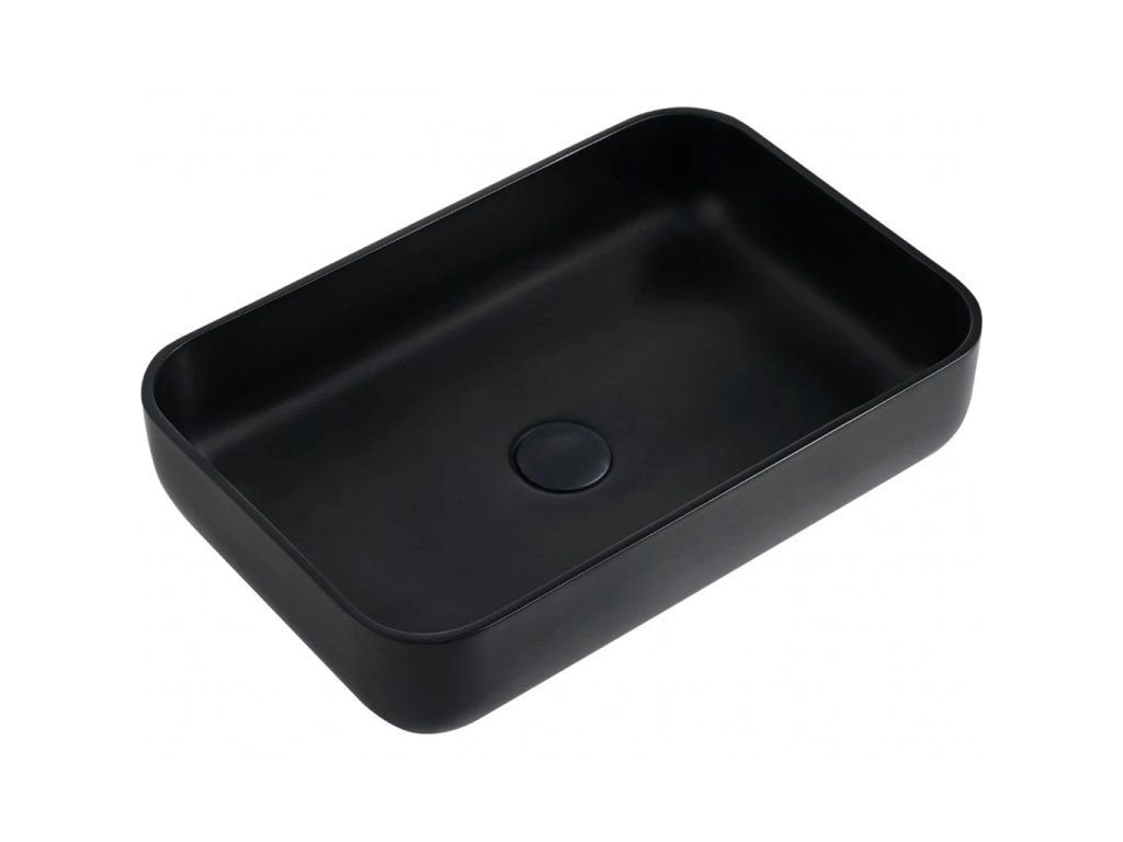 CERANO - Umyvadlo z litého mramoru Ora - na desku - černá matná - 54x36 cm